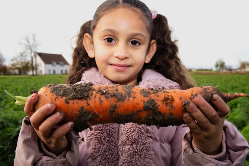 De oogstdag was een feest en de kinderen mochten hun zakje met wortels mee naar huis nemen. Ze konden deze amper zelf naar de auto dragen. Ook trakteerde Petra op wortelcake. “Ik heb zelf straks een lekkernij: wortelcake. Zo laat ik zien dat je met wortels meer kunt doen dan alleen rauw eten. Ik hoop dat ze er thuis ook nog mee gaan koken. Ik hoop dat het zaadje een beetje is geplant – letterlijk en figuurlijk.”